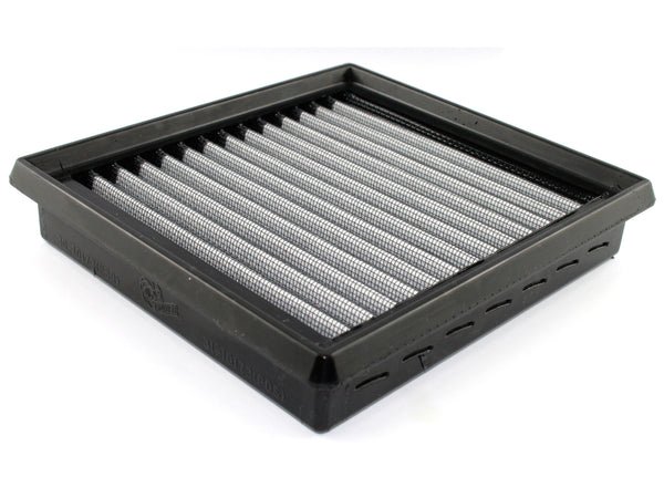 aFe MagnumFLOW Air Filters OER PDS A/F PDS Nissan 370Z 09-11 V6-3.7LConstructed with 100% polyurethane on all four sides, oil free OE replacement performance filter will outflow the stock filter for improved horsepower and torque. The Pro DRY S air filter uses three layers of progressively finer mesh cotton gauze media to provide maximum airflow for best performance results. Washable and reusable for multiple cleaning cycles, the tall, open, evenly spaced pleats provide excellent dust holding capacity for a longer service cycle between cleanings. An integrated urethane bump seal insures tight, no leak seal over the life of the filter.