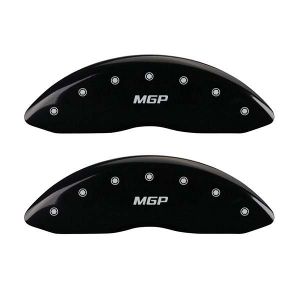 Set of 4 caliper covers, Engraved Front and Rear: MGP, Black powder coat finish, silver characters.